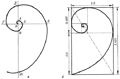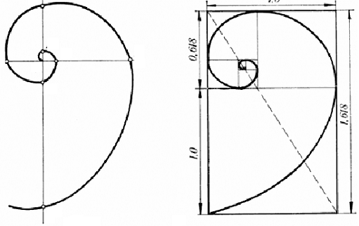 квадратов, то получим кривую, называемую золотой спиралью. Такую спираль можно