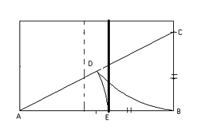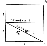 квадрата, вторая складка представляет собой диагональ прямоугольника 1х2.