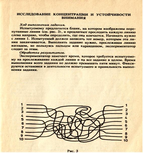испытуемому для прослеживания каждой линии и на все задание в целом. Время