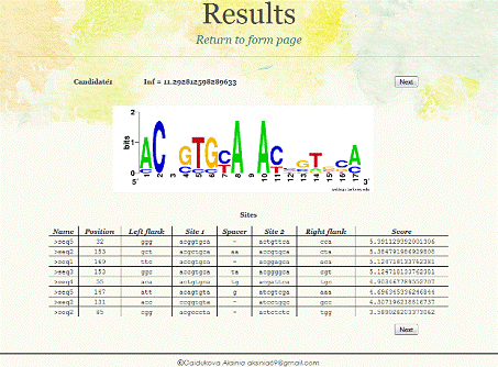 приспособлен для поиска двойных мотивов, разделенных спейсером, поэтому