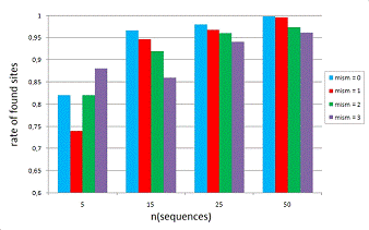 сравнимую с MEME, а на выборках с меньшим количеством сайтов превосходит его. SeSiMCMC показал относительно