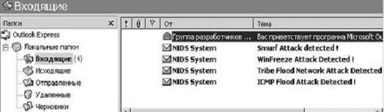 Сообщения об атаках в папке «Входящие» MS Outlook Express