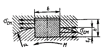 на 5…10 мм меньше длины ступицы, согласовывая со стандартом и проверяют на смятие: