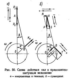 в плоскости качания шатуна: