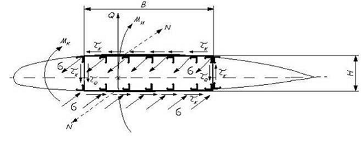 лонжеронов и стрингеры). Можно приближенно считать, что поперечную силу