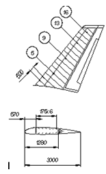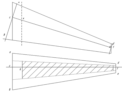 расстоянии 1м от бортовой нервюры. Бак или секцию считаем усеченной пирамидой с