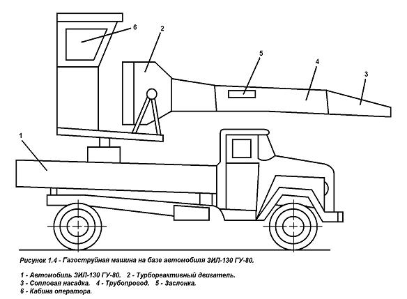 выхлопным соплом на специальном шасси, позволяющем изменять угол наклона