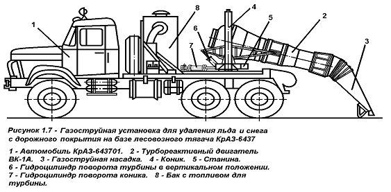 тепловой газоструйной установки для удаления льда и снега с дорожного покрытия