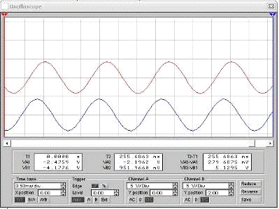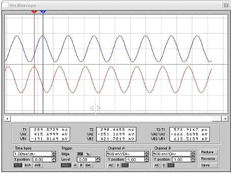 сигналов. И в правом нижнем углу берется отсчет Δt=T2-T1=0.5 мс.