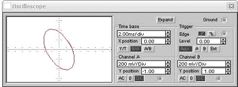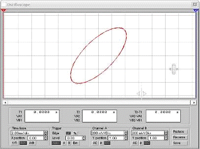 эллипс с осями А - малая и В - большая ось. Фазовый сдвиг связан с размерами
