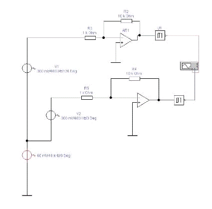 Для этого в цепь входных сигналов включаем генератор помех V3