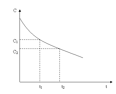 скорость реакции vср в интервале времени от t1 до t2 определяется соотношением: