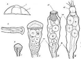 В — последовательные стадии развития гонангия; /—10 августа 1981 г.;//—через 50
