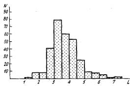 3. Вариационный ряд величин расстояний между побегами на столонах. N—количество