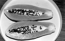 становятся оранжевыми. По структуре плод папайи похож на дыню: кожура, под ней