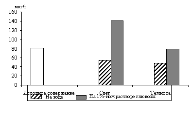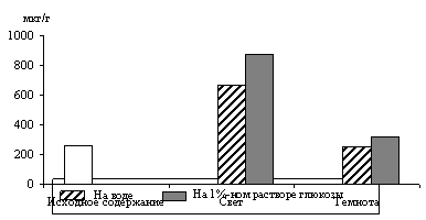 светом и экзогенным субстратом – 1%-ным раствором глюкозы. В отсутствии