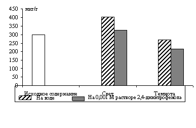 дыхательный процесс ингибировали 0,001 М раствором 2,4-динитрофенола –