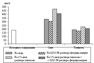 раствора глюкозы – стимулировало накопление ДОАФ и ФГА на свету, в результате