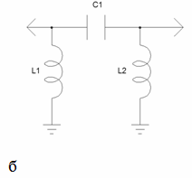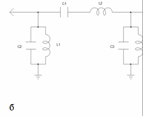 характеристика ФВЧ, б) схема электрическая принципиальная П-образного звена ФВЧ