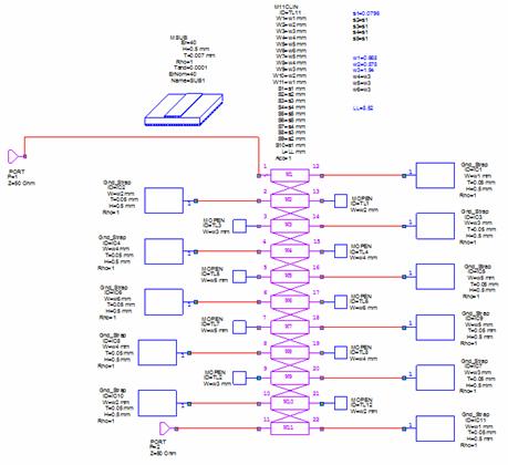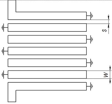 встречных штырях, реализованный на несимметричной полосковой линии. Эти фильтры