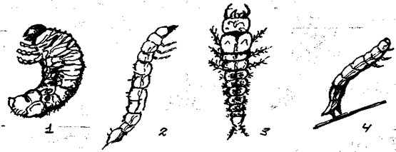 Рис. 3. Типы ротовых органов насекомых: 1-грызущий,