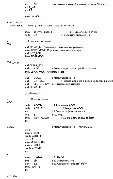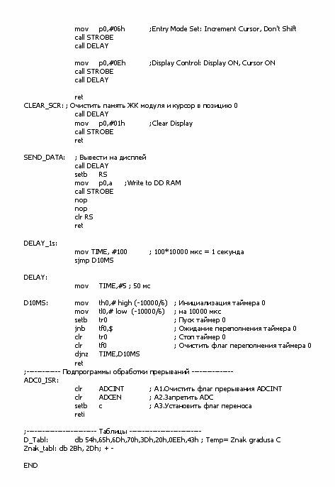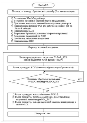Блок-схема алгоритма работы термометра приведена на рисунке 16. Исходный текст