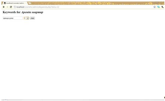 списке статей вызывается новая форма ввода ключевых слов, связанных со статьей
