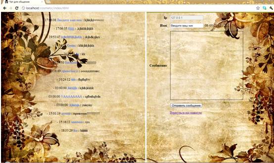 отображается текст чата, в другом поле ввода текста и ника (рис. 13).