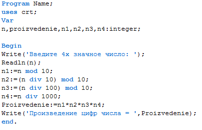 Дано целое четырехзначное число. Используя операции div и mod, найти