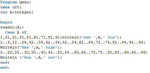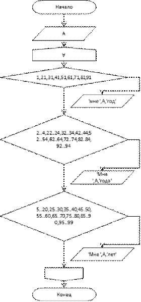 Для целого числа А: от 1 до 99 напечатать фразу «Мне k лет», учитывая при