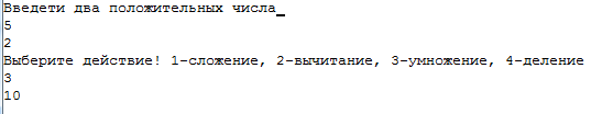 4 - деление). Составить программу, которая по введенному номеру выполняет то