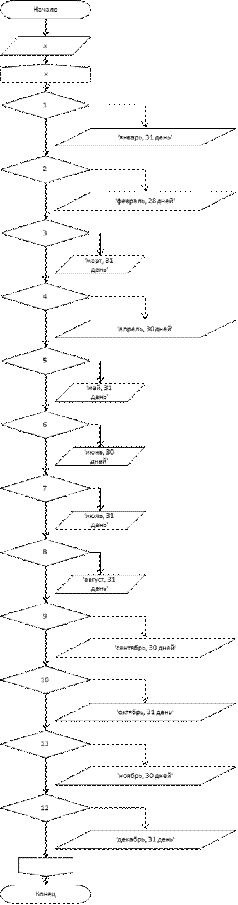 Дан номер месяца (1 - январь, 2 - февраль, ...) Вывести число дней в этом