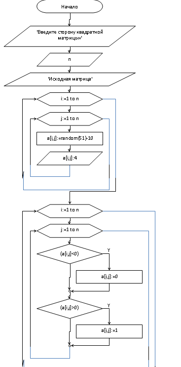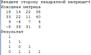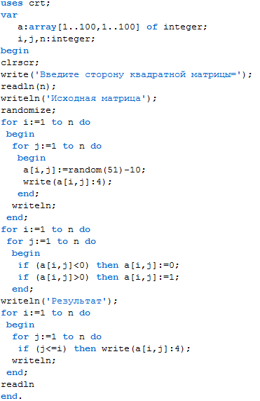 элементов матрицы нули, а на место положительных - единицы. Вывести на печать