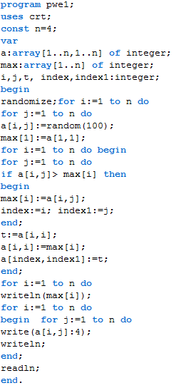 Дана целочисленная квадратная матрица. Найти в каждой строке наибольший