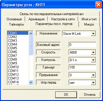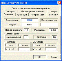 в бланках Основні і Параметри послідовних портів діалогу Параметри вузла.