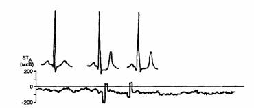 Б).ЭКГ во время приступа стенокардии, отмечается