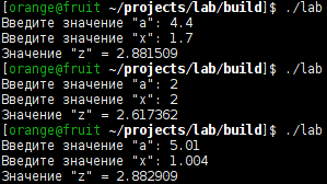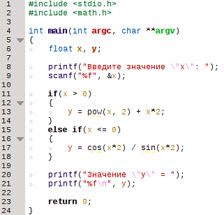 клавиатуры, используя функцию scanf. Вычисляем значение функции