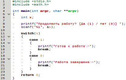 введённое с клавиатуры. Далее, используем оператор выбора switch
