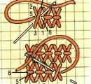 сторону в точку 3 и введите ее в точку 4, пересекая первый стежок. Повторяйте