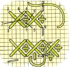 поверх стежков вертикального креста. Второй ряд вышивайте в том же порядке, но