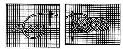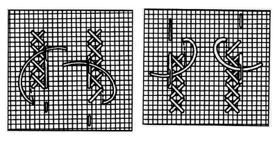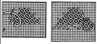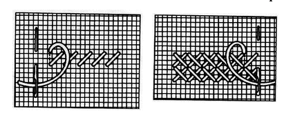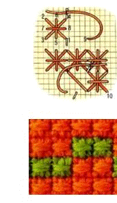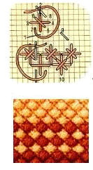 креста и выполняется слева снизу направо вверх. В рядах справа-налево стежок