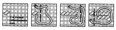 стежки выполняются наоборот, а игла вкалывается снизу вверх.