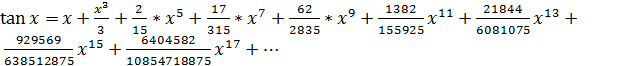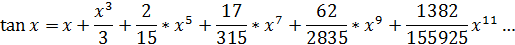 y=tan(x) основано на разложении ряда Тейлора с использованием чисел Бернулли.