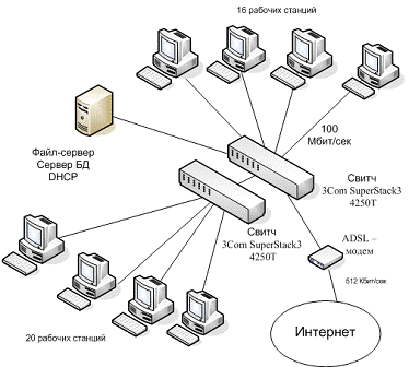 локальная вычислительная сеть для ГППО "Псковавтотранс". Существовавшая сеть перестала удовлетворять требованиям по