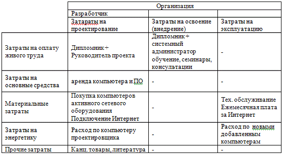 экономической эффективности проекта. На основании этих затрат и экономического