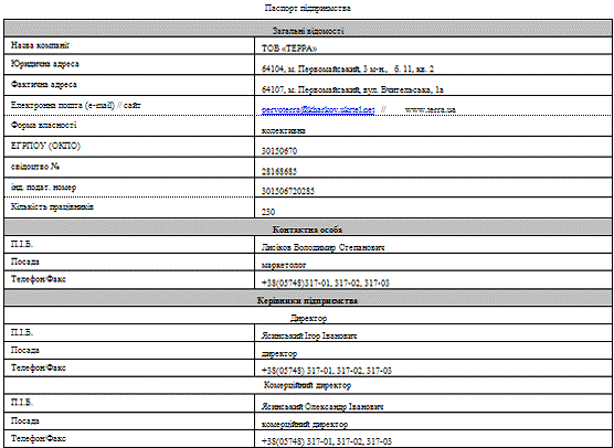 технічним умовам, прийняті на склад готової продукції підприємства [44, с. 73].