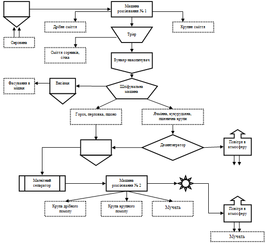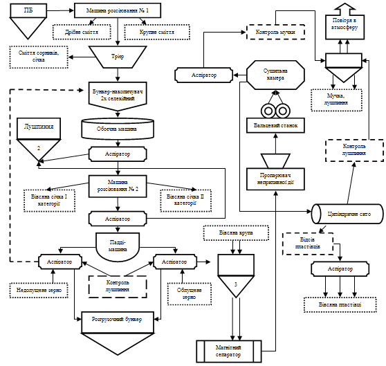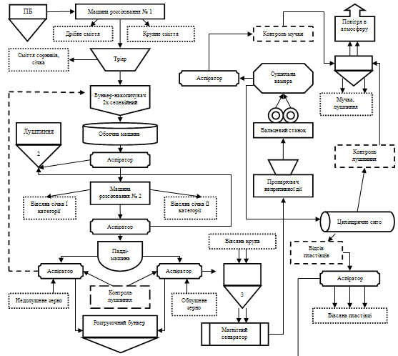 Рис. Технологічний процес виробництва вівсяних пластівців з