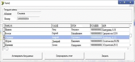 таблица по всем абонентам которые есть в БД, рисунок 16 приложения.