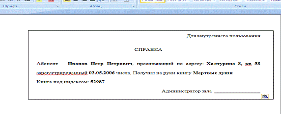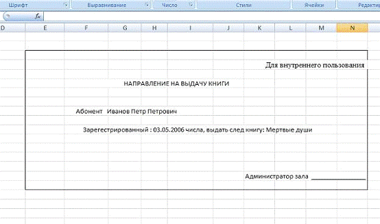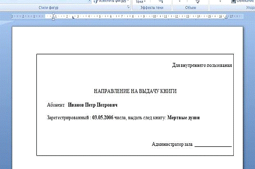 документа НАПРАВЛЕНИЕ НА ВЫДАЧУ КНИГИ