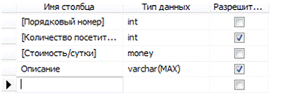 .2.4 Создание таблицы Booking
